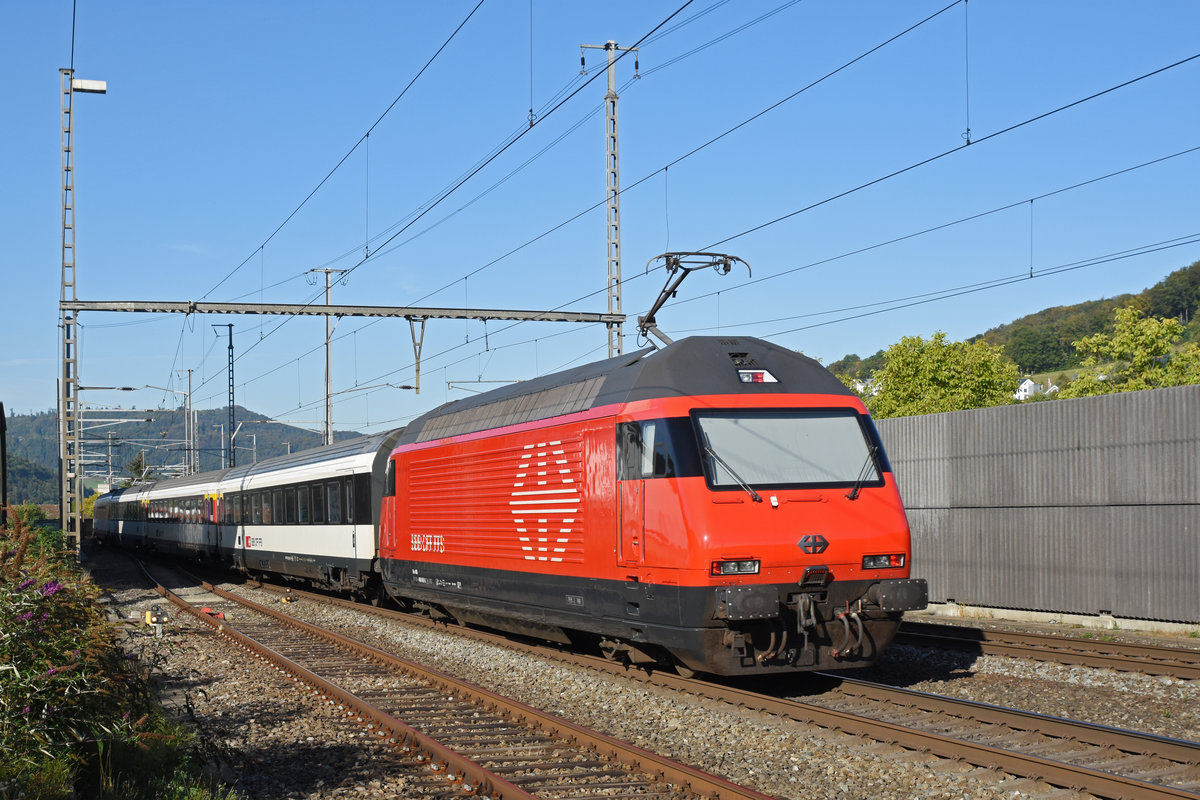 Re 460 042-5 durchfährt den Bahnhof Gelterkinden. Die Aufnahme stammt vom 17.09.2019.