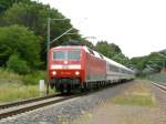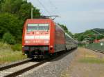 Re 460 036-7 übernimmt in Chur den IR 1786 mit einem ehemaligen Cisalpino-Wagen. (12.06.2010)