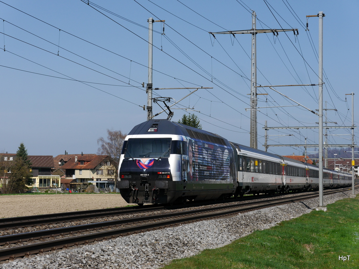 SBB - Nachschuss der SBB Werbelok 460 028-4 bei Lyssach am 25.03.2017