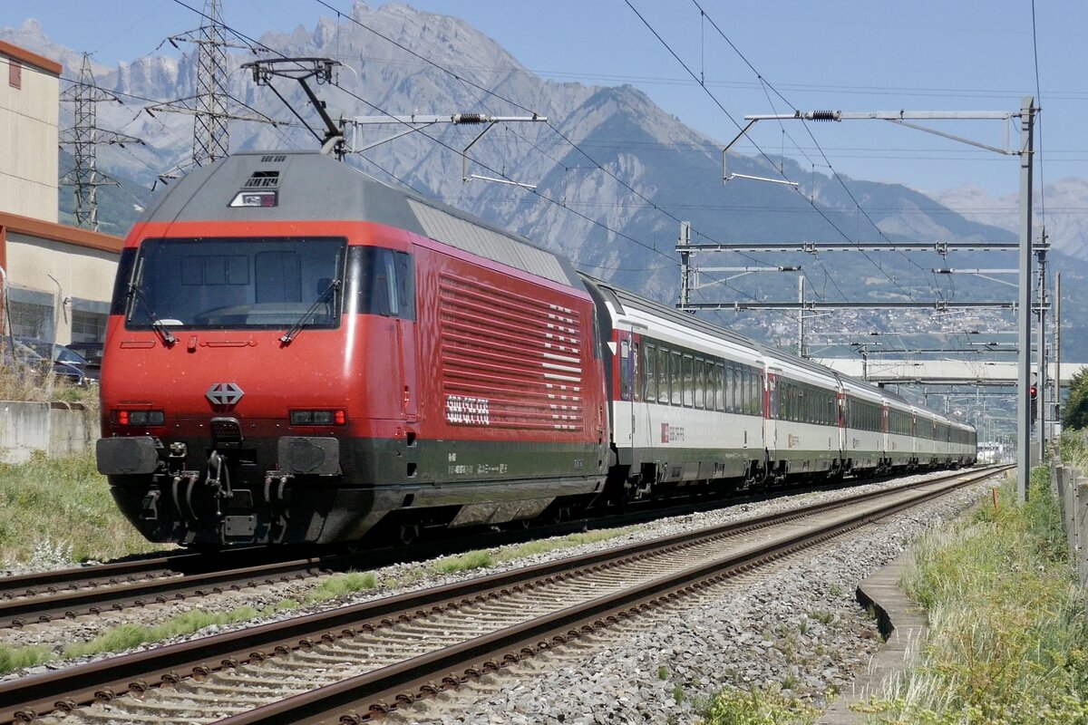 Die Re 460 007 "Junior" am Zugschluss des IR 90 nach Brig am 13.8.22 in Chamoson.