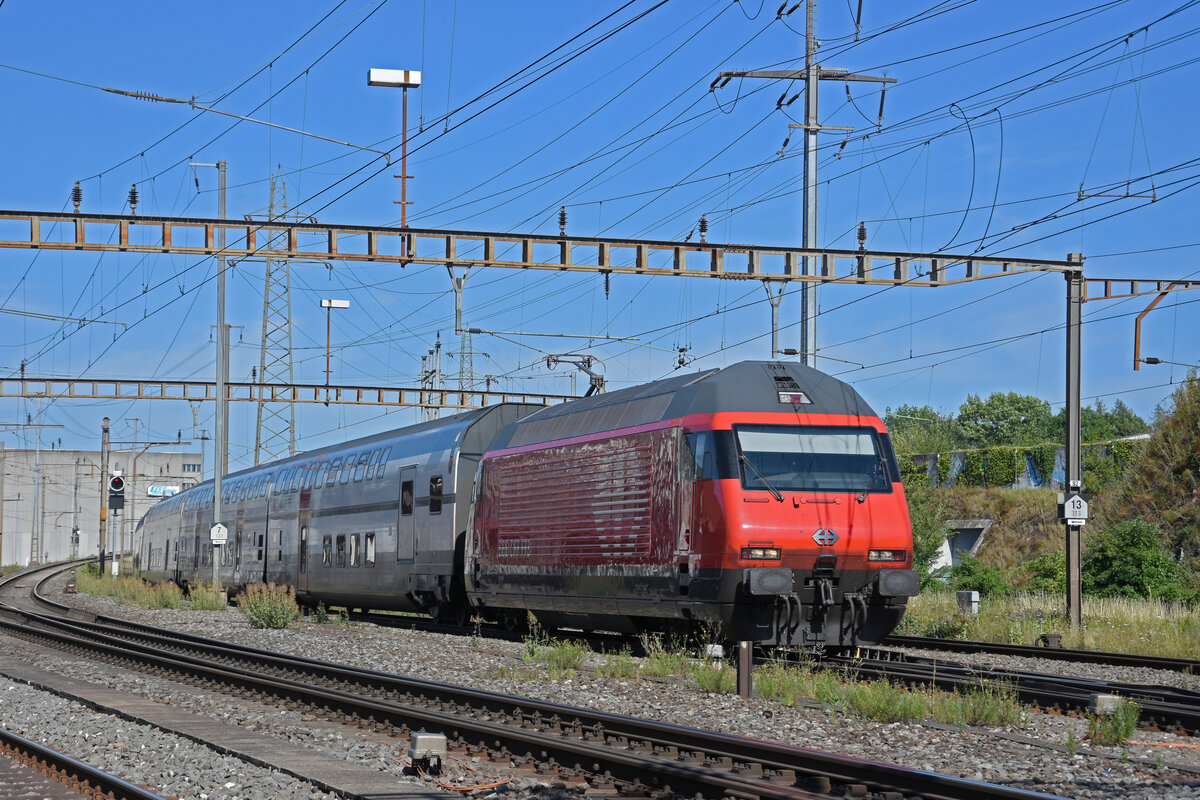Re 460 039-1 durchfährt am 25.06.2022 den Bahnhof Pratteln.