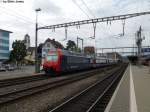 Die Re 460 086-2 ''Ägerisee'' verlässt mit einem kurzen EW4-Pendel Dietikon