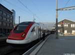 Re 460 007-8 ''Junior'' am 15.1.2010 in Olten. An 3. Stelle dieses IC's befindet sich ein EW4-Speisewagen mit einem umgebauten Panto, wobei er diesem Zweck nicht mehr gerecht wird. Weil die Pantos der WR EW IV nicht mehr benötigt werden, werden ihnen die Wippen demontiert, und an deren Stelle mit einer Metallplatte festgeschraubt, was ein Heben bei Geschiwndigkeiten von bis zu 200 km/h verhindert.