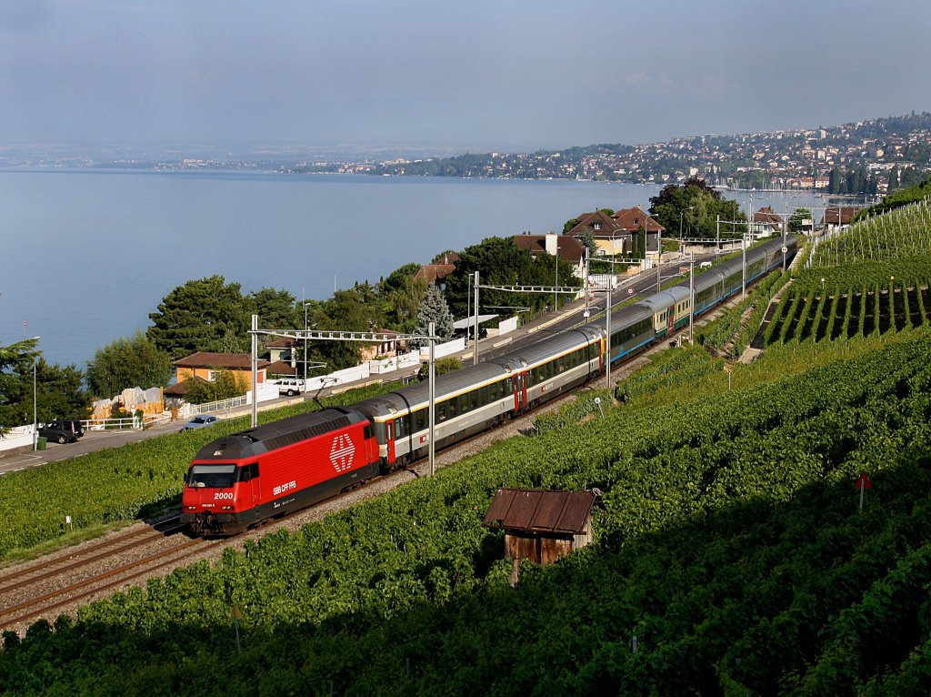 Die Re 460 032 am 29.08.2009 mit einem EC unterwegs bei Villette VD