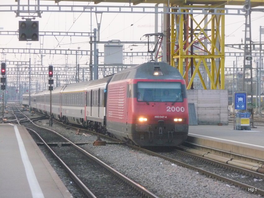 SBB - 460 047-4 vor Schnellzug bei der einfahrt im Hauptbahnhof von Zürich am 18.12.2009