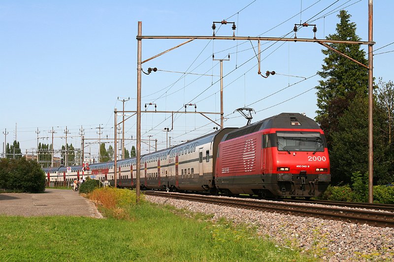 460 040-9 hat soeben mit einem IC in Richtung Brig den Bahnhof von Romanshorn verlassen. Aufgenommen am Abend des 05.08.2009.