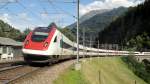 Die Re 460 029-2  Eulach  durchfährt am 15.07.11 mit einem verstärkten IR den Bahnhof Lavorgo.
