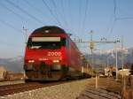 Re 460 014-4 durchfährt am 05.02.2026 den Bahnhof Pratteln.