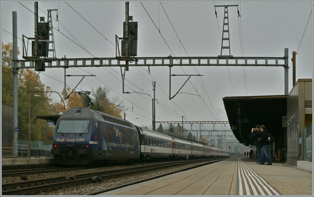 Re 460 050-8 mit einem IC Richtung Basel beim Halt in Liestal am 6. Nov. 2011.