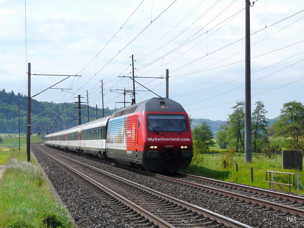 SBB - Werbelok 460 036-7 mit Schnellzug unterwegs bei Bettenhausen/BE am 19.05.2012