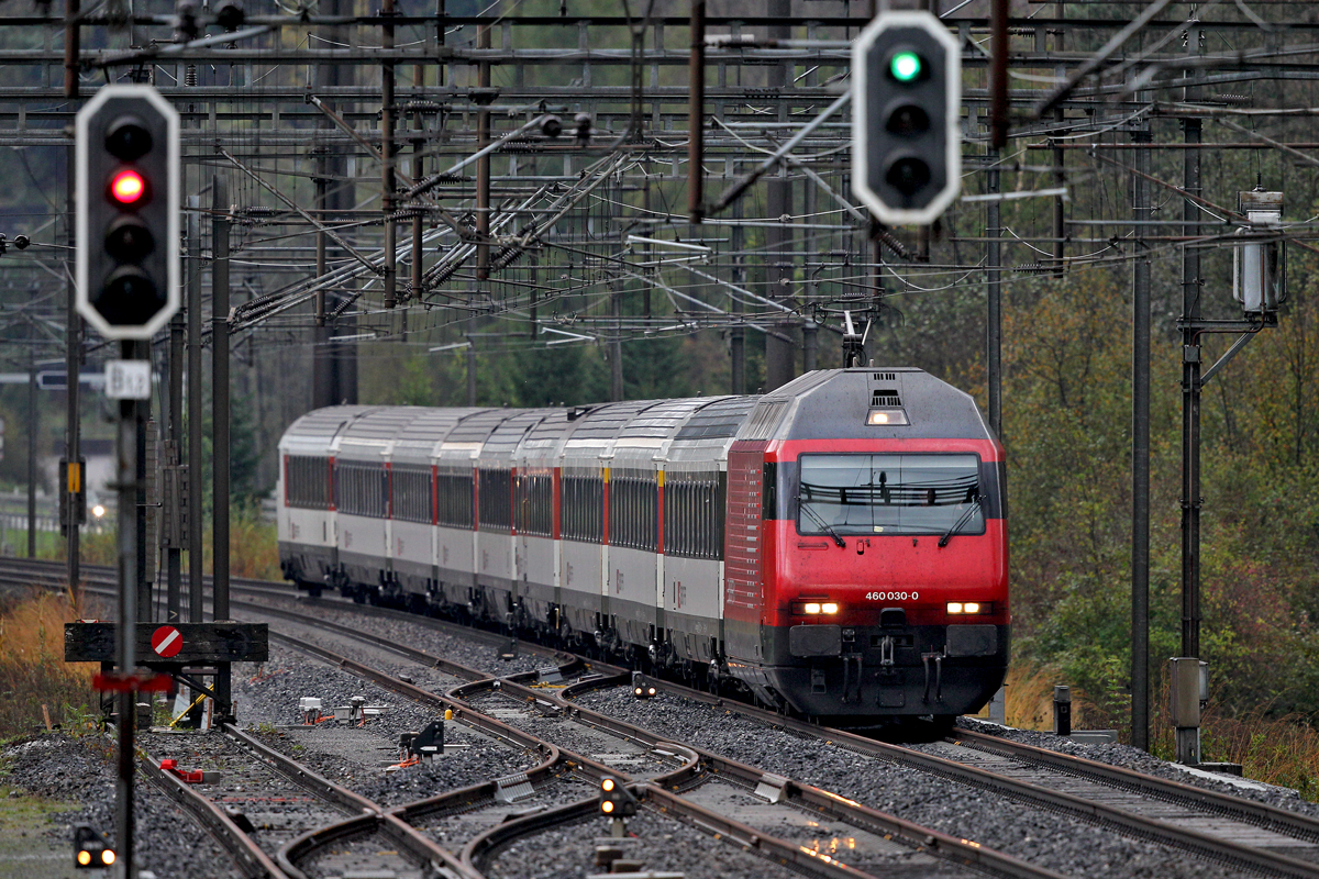 Re 460 030 mit einem Ic von Chur nach Zürich HB.Bild 22.10.2014