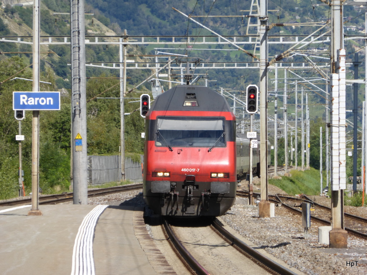 SBB - 460 017-7 vor IR bei der durchfahrt im Bahnhof Raron am 16.08.2015