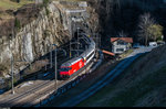Re 460 014-4 durchfährt am 05.02.2026 den Bahnhof Pratteln.