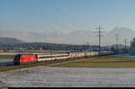 Die SBB Re 460 095-3 durchfuhr am 15.1.17 um 13.03 Uhr den Bahnhof Bassersdorf, im Kanton Zürich. Die Lok fuhr mit SBB EW IV Waggons als IR nach Zürich HB.