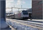 Re 460 010-2 durchfährt am 02.02.2026 den Bahnhof Gelterkinden.