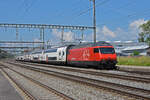 Jubi Lok Re 460 019-3 "175 Jahre Schweizer Eisenbahnen" durchfährt den Bahnhof Rupperswil. Die Aufnahme stammt vom 25.07.2022.