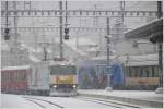 Re 460 028-4 (Western Union) und Re 460 075-5 (Alptransit) rangieren am Morgen des 27.12.09 im Bahnhof von Chur. (Hans)