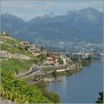 Die Re 460 100-1 mit einem IR nach Brig beim Halt in Vevey am 31. August 2011.