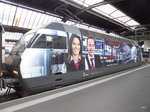 Re 460 028-4, mit einer SBB Personal Werbung, durchfährt den Bahnhof Muttenz. Die Aufnahme stammt vom 30.05.2016.