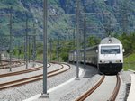 Re 460 028-4, mit einer SBB Personalwerbung, durchfährt den Bahnhof Muttenz. Die Aufnahme stammt vom 10.06.2016.
