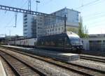 Doppeltraktion, mit den BLS Loks 465 018-0 und 475 423-0 fährt Richtung Bahnhof Tecknau.