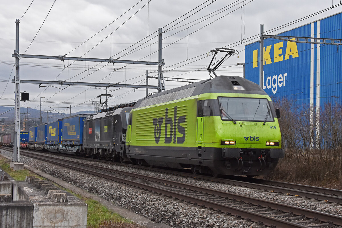 Doppeltraktion, mit den Loks 465 010-7 und 193 713-5 fährt am 16.02.2024 Richtung Itingen.