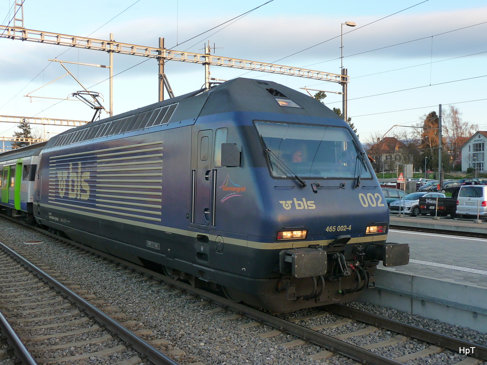 bls - 465 002-4 im Bahnhof Ins am Morgen des 30.03.2012