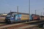 Re 465 008-1 durchfährt den Badischen Bahnhof in Basel.