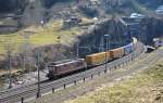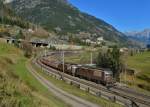 Vierfach Traktion mit den BLS Loks 182, 465 014-9, 465 002-4 und 174 durchfahren den Badischen Bahnhof. Die Aufnahme stammt vom 01.12.2015.