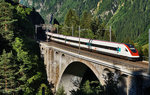 Über die untere Wattinger-Brücke unterwegs ist dieser railCare-Zug, bespannt mit der Re 465 016. Bei dem heissen Wetter ist eine gute Durchlüftung/Abkühlung immer Willkommen, sei es beim Fotograf oder Lokführer. Bild vom 29.07.2016