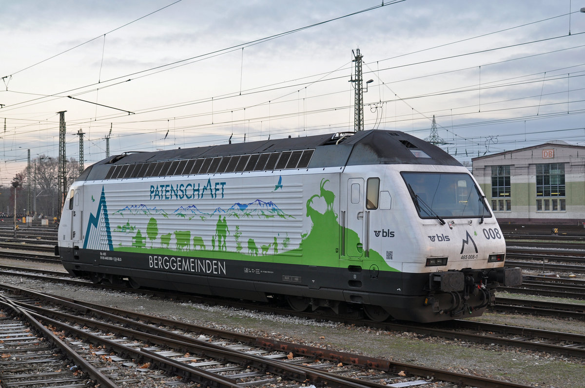 BLS Lok 465 008-1 ist am 30.11.2016 beim Badischen Bahnhof abgestellt.