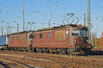 Doppeltraktion, mit den BLS Loks 475 408-1 und 485 020-2 verlässt die Abstellanlage beim badischen Bahnhof. Die Aufnahme stammt vom 11.11.2018.