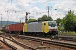 Durchfahrt am 18.06.2016 von Re 482 020-5 mit einem Containerzug in Koblenz Lützel in Richtung Weißenthurm. Die 482er bespannte den Zug bis Aachen West und gab dort ihn ab, damit dieser weiter in Richtung Belgien fahren zu können.