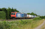 185 063 (482 033) der Press führte am 10.12.25 einen Containerzug durch Braschwitz Richtung Halle(S).