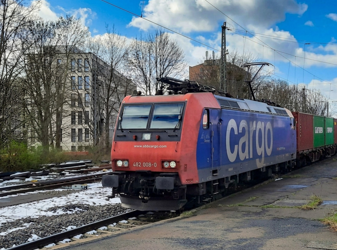 482 012-2 der SBB-CARGO steht vor dem gleichnamigen Stand am Aussengelände anlässlich der TransportLogistic in München; 090515