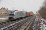 Gleich drei Loks hingen vor diesen KLV-Zug in Richtung Norden, wobei die dritte lediglich kalt, als Wagenlok, mitläuft. Im einzelnen handelt es sich um 482 025-4, 482 011-4 und 482 018-9. Aufgenommen am 22.03.2013 am BÜ Eltmannshausen/Oberhone.