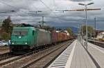 Am 02.11.2013 bespannte die SBB Cargo Re 482 016-3 den BASF-Güterzug von Ludwigshafen in die Schweiz. Hier ist der Zug beim der Durchfahrt in Emmendingen gen Freiburg.