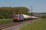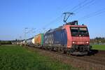 185 063 (482 033) der Press führte am 10.12.25 einen Containerzug durch Braschwitz Richtung Halle(S).