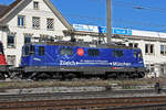 Doppeltraktion, mit den BLS Loks 485 016-0 und 475 413-1 durchfährt den Bahnhof Gelterkinden. Die Aufnahme stammt vom 05.11.2021.