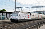 Re 486 501-0 durchfährt den Bahnhof Rothrist.