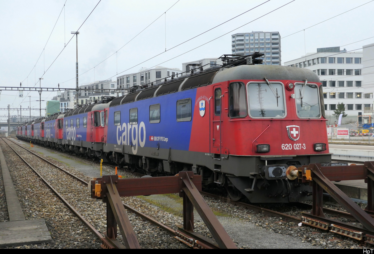 Der aus Richtung Romanshorn kommende Kesselwagenzug, gezogen von Re 620 081-0 'IMMENSEE', wird in Kürze die Station Bürglen (TG) passieren (03.10.2018)
