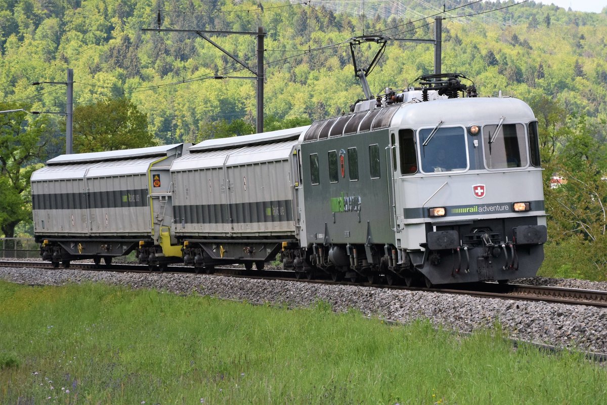 Re 620 003-4 der railadventure mit 2 Schutzwagen im Schlepp am 12.05.2019 zwischen Koblenz und Rietheim in Richtung Zurzach.