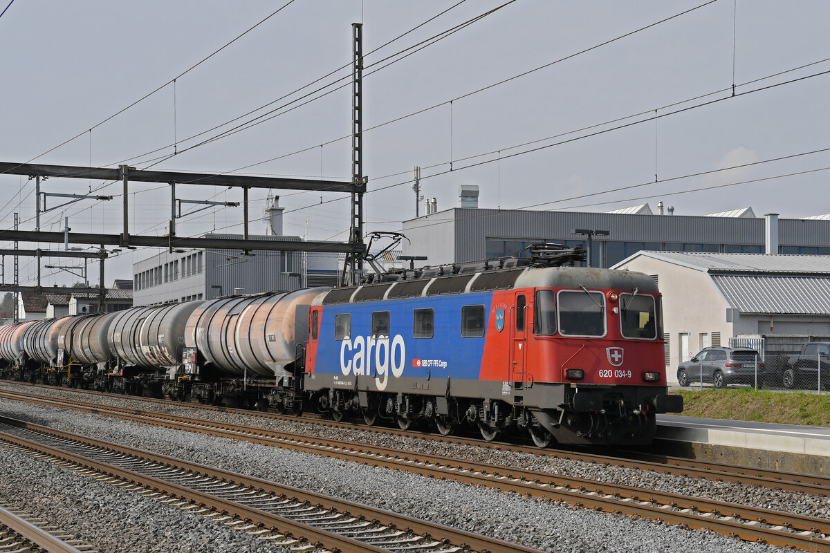 Re 620 024-0 durchfährt am 09.03.2026 den Bahnhof Pratteln.