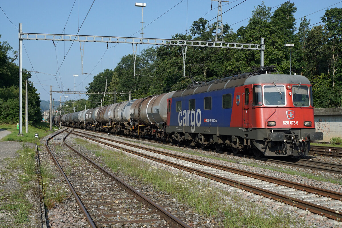 Re 620 078 "BASSERSDORF" mit einem Kesselwagenzug anlässlich der Bahnhofsdurchfahrt Zweidlen.