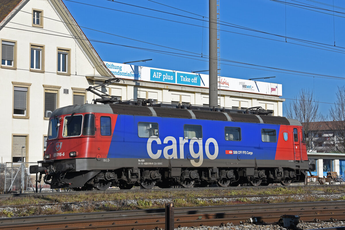 Die Re 620 025 der SBB Cargo zog am 22. April 2021 einen gemischten Güterzug, vermutlich vom RBL nach Chiasso, durch Claro. Zu erst hinter der Lok ein Baukran der Rhomberg-Sersa Rail Group.