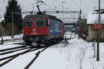 Die SBB Re 6/6 11688 (Re 620 088-5) "Linthal" in der Rail-X Lackierung hatte in Domo II den "Spaghetti"-Zug übernommen und ist nun in Vallorbe eingetroffen, wo sie von SNCF Loks abgelöst werden wird. Links im Bild ist der Gegenzug zu erkennen.