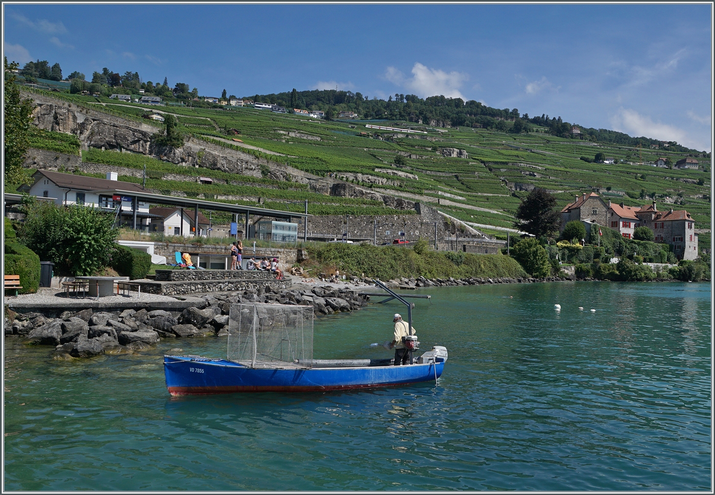 Die SBB Re 6/6 11621 (Re 620 021-6) "Taverne Toricella" ist bei St.Saphorin mit einem Mini-Güterzug in Richtung Wallis unterwegs.