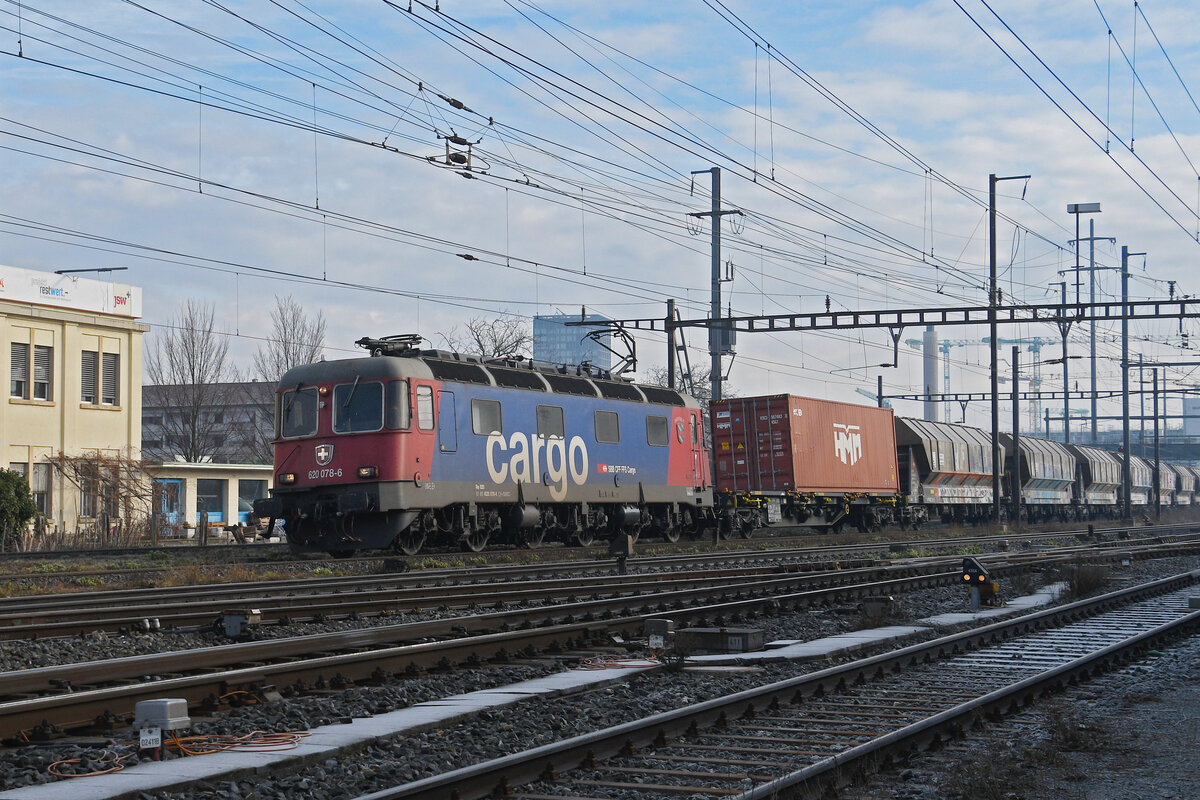 Re 620 078-6 durchfährt am 22.01.2026 den Bahnhof Pratteln.