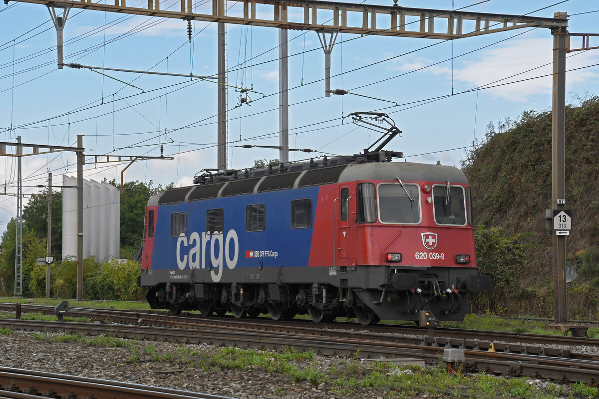 Re 620 039-8 durchfährt am 24.09.2024 solo den Bahnhof Pratteln.