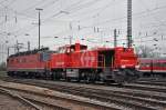 Re 6/6 11641 und die Rangierlok Am 843 020-9 durchfahren den Badischen Bahnhof in Basel. Die Aufnahme stammt vom 10.02.2014.